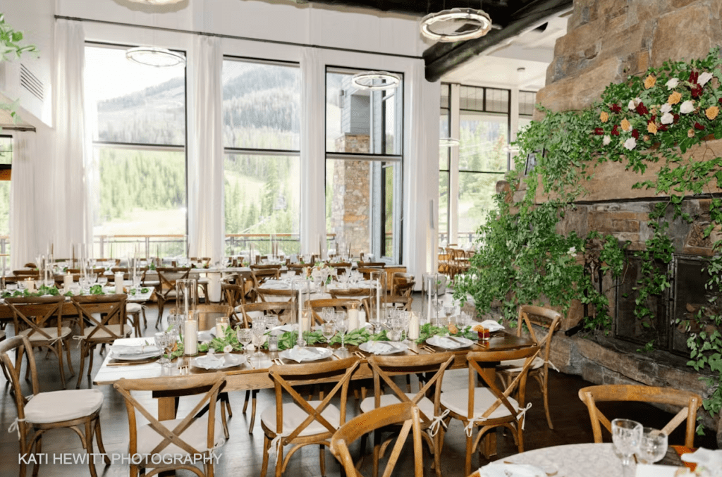 Located in Big Sky, Moonlight Basin is a grand lodge surrounded by natural beauty, including mountains, forests, and expansive blue skies. The venue offers both indoor and outdoor spaces, accommodating up to 200 guests, making it ideal for ceremonies, dinners, drinks, and dancing. Their packages include full wedding planning services, on-site catering, and exclusive access to the lodge and its surrounding natural landscapes. Couples can choose from several event sites, including a stunning outdoor terrace and an elegant indoor lodge space with vaulted ceilings and floor-to-ceiling windows.